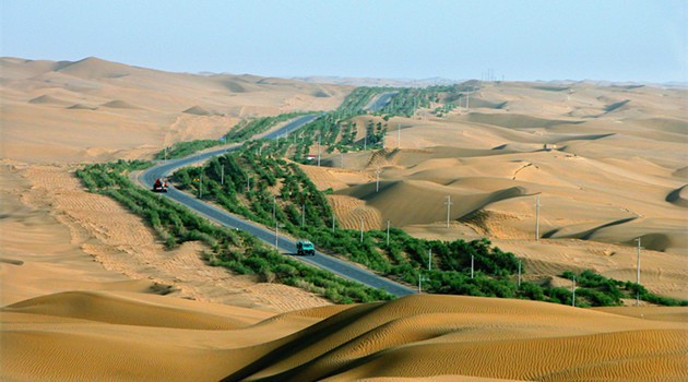 Нельзя сказать, что строительство 450 километров высококачественной автомобильной трассы посреди раскаленных песков является делом заурядным. Но Китай успешно реализовал невероятный по себестоимости и трудозатратам инфраструктурный проект там, где тысячелетиями передвигались лишь караваны верблюдов и где на сотни километров не было ни одного поселения. Палящее солнце, отсутствие воды, песчаные бури, нулевая инфраструктура региона — вот неполный список того, с чем пришлось столкнуться строителям самой длинной в мире трассы, пролегающей по территории пустыни. Но для чего китайцам потребовалось преодолевать такие невероятные трудности?