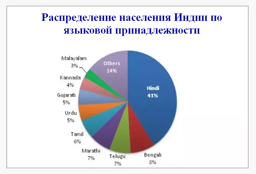 Язык хинди — это безусловный лидер по количеству носителей, которых насчитывается около 490 миллионов человек (около 41% населения страны). Хинди распространен преимущественно в северной части страны. То есть, если вы собрались посетить Гоа или любое другое место в южной части Индии, можно не заучивать фразы на хинди из разговорника, так как они вам не пригодятся.