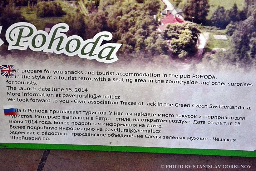 На нем на английском и русском языках некий паб «Похода» приглашал в гости туристов. Открытие паба намечалось на июнь 2014 года. Но самое интересное, что подписано сие объявление было от имени некоего гражданского объединения «Следы зелёных мужчин»! Что это было — тонкий троллинг или провокация — нам уже не узнать, но, судя по всему, дела у паба не заладились.