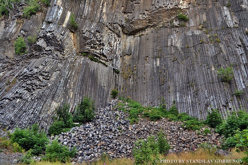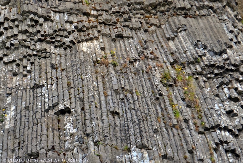 Здесь также скалистая поверхность представляет собой множество шестигранных соединенных между собой столбов. Правда их диаметр значительно меньше ирландских.