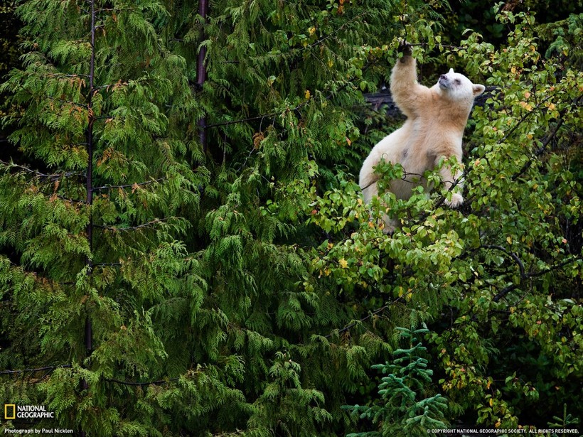 Думаешь, что перед тобой полярный мишка, который заблудился где-то в лесу? На самом деле это очень редкий подвид американского черного медведя, обитающий исключительно в лесах западного побережья Канады. Кермод или, как говорят местные индейские племена, «медведь-призрак», не относится к белым медведям и альбиносом его назвать нельзя, а наличие белой шерсти связано с наличием рецессивного гена окраски.