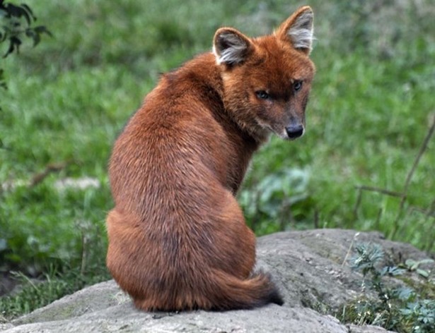 Это не лисица, не пес, а самый настоящий волк, просто красный. Его еще называют горным или гималайским. Горного хищника можно увидеть в Южной и Восточной Азии, преимущественно в гористой местности.