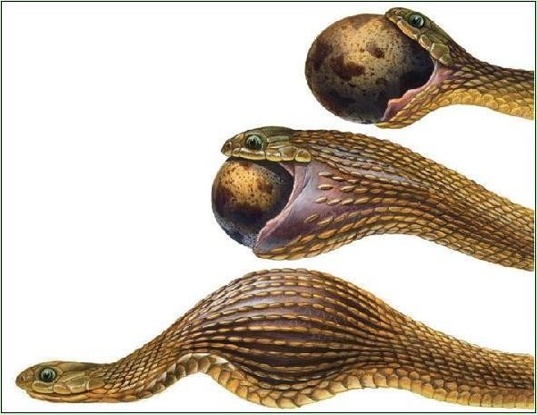 Строение челюстей у этих подотрядов также различается. Вспомните кадры какого-нибудь документального фильма, где африканская змея проглатывает огромное яйцо страуса, диаметр которого существенно превышает размеры ее головы, или удава, который поймал в джунглях зазевавшегося зверя и заглатывает его целиком, демонстрируя чудеса растяжки своего тела. Все эти трюки возможны благодаря особенному строению змеиных челюстей, имеющих подвижное соединение. Но вот ящерицы, в том числе и безногие ящерицы, на такое не способны.