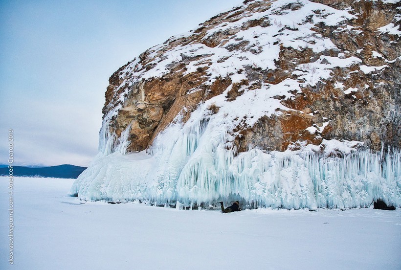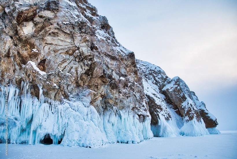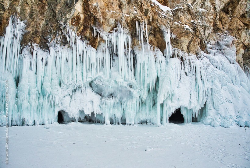 Гроты стали ниже, входы в них, соответственно, только ползком. Байкал за последний дождливый год хорошо прибыл, наплескало на скалы Голого тоже знатно.