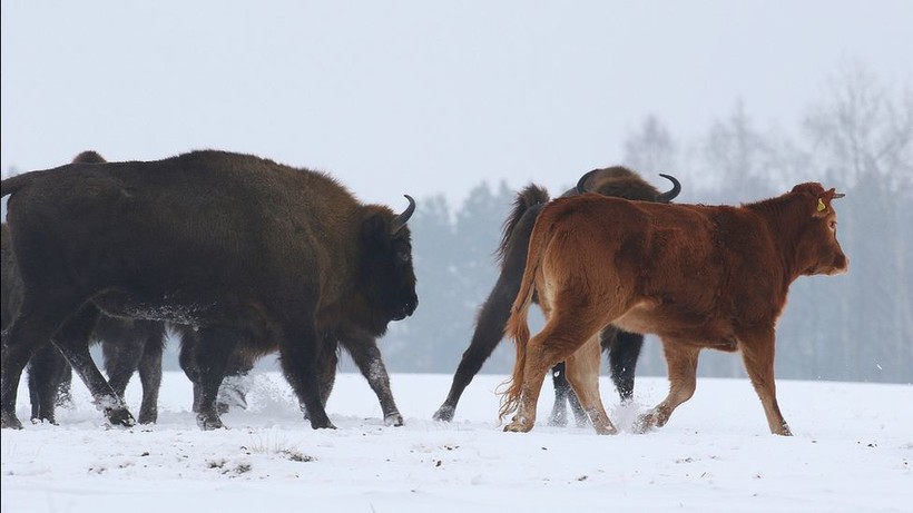 В одной из польских деревень корова сбежала от своих хозяев и, найдя себе новую семью, не пожелала возвращаться назад. Стоит заметить, друзей она выбрала достойных — целое стадо могучих зубров. Люди даже не стали пытаться увести свою подопечную обратно домой, поскольку бизонам это могло не понравиться.