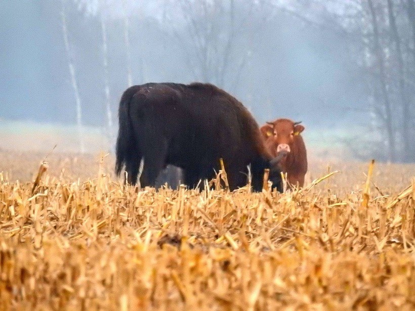 Обратили внимание на необычного члена стада и ученые. Первым стал орнитолог Адам Збирит. Когда он приметил зубров, ему показалось подозрительным, что один из них куда меньше по размеру остальных и имеет несвойственную этим животным рыжую окраску. Тогда он достал бинокль и увидел, что это обычная корова. Мужчина был крайне поражен, ведь подобное просто аномально.