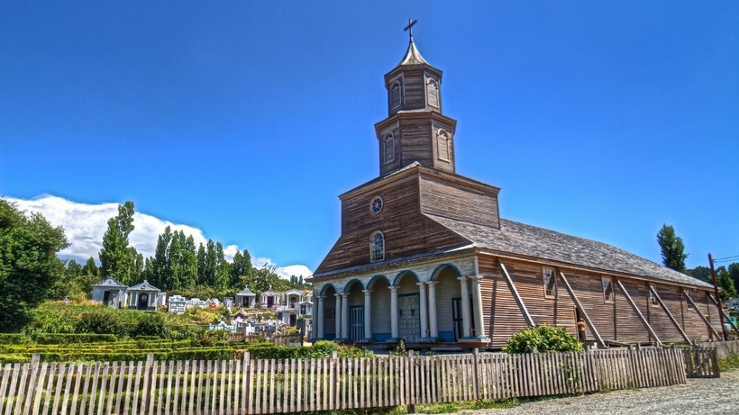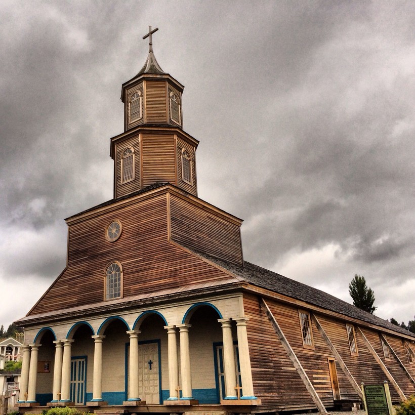 Необычные по своей архитектуре католические церкви появились на острове с приходом в этот регион испанцев. Обращение местных жителей в христианство, а на острове на тот момент проживали индейцы мапуче, было одной из главных задач в период колонизации Чилоэ. Начиная с XVI века на острове Чилоэ было основано несколько портовых городков, а в результате деятельности миссионеров здесь появилось множество оригинальных церквей. Почти все эти храмы построены из дерева и чем-то напоминают старинные церкви на острове Исландия. Но европейские архитектурные традиции в этих храмах перекликаются с местными индейскими, что придает им неповторимый колорит. Необычная архитектура и удивительная сохранность храмов, построенных в XVIII-XIX веках, послужили причиной включения их в чилийский список культурного наследия ЮНЕСКО.