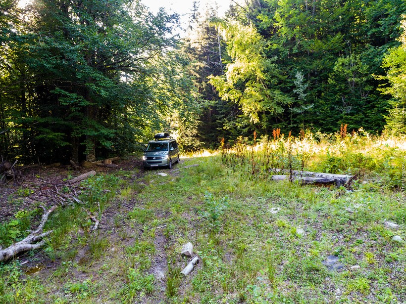 А развернуться-то негде, а сдавать задом до самого поселка как-то не комильфо! Наконец нашел лесовозную площадку, перед самым въездом на которую мы хорошо так проскреблись днищем об огромный валун. Досталось креплениям топливного бака, кронштейну запаски и еще чему-то по мелочи. Единогласно решили, что дальше нам не надо.