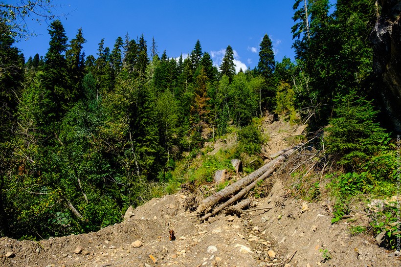 Приблизительно через два километра уперлись в обвал, дальше дороги нет.