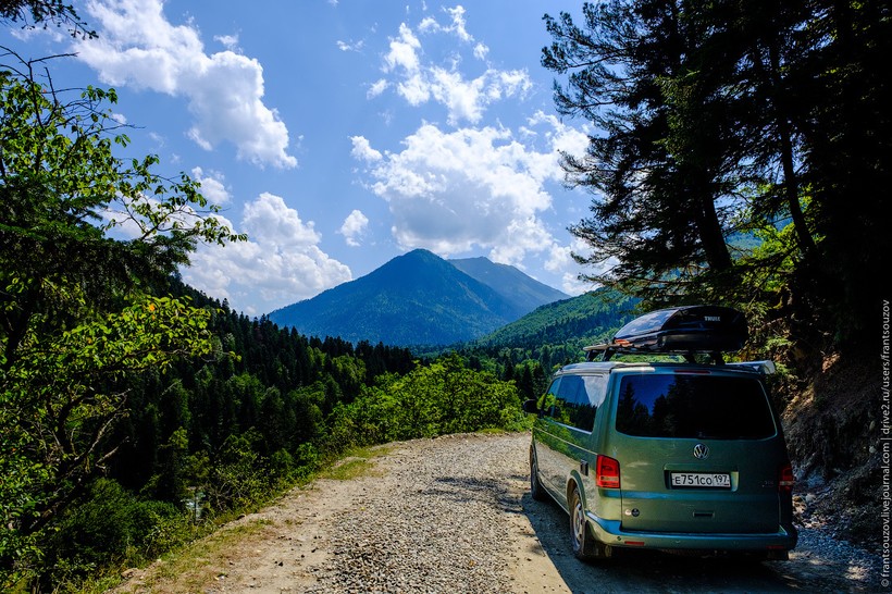 — Вон, за поселком, дорога в горы уходит. Там красивые виды на ущелье. Я, конечно, не водитель, но на таких микроавтобусах люди туда ездят...