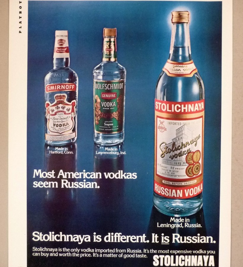 Советское руководство не хотело платить за газировку драгоценной валютой, а рубли были бесполезны на мировом рынке. Поэтому взамен за Пепси-Колу американская компания получила водку! Ей было дано эксклюзивное право продавать «Столичную» в США. В те годы это была единственная русская водка, которую можно было купить на западе — этот факт подчеркивался в печатной рекламе: