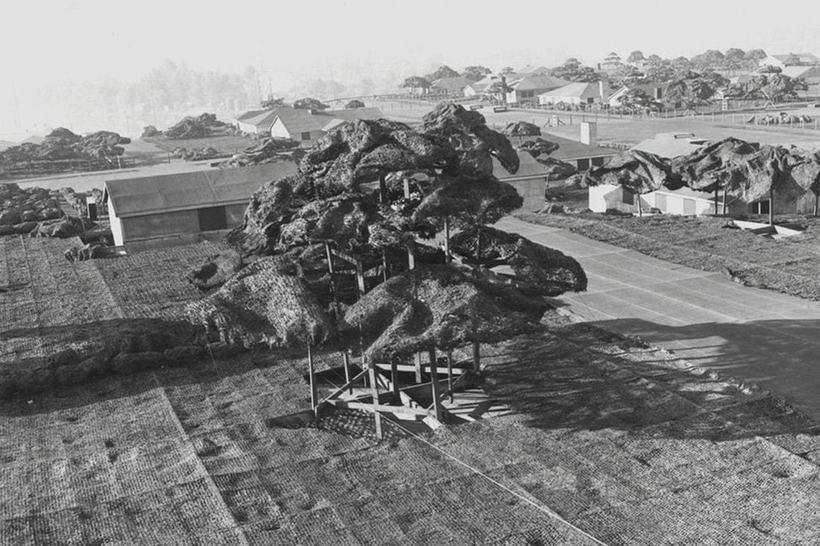 С воздуха городок кажется совершенно обычным. У любого вражеского японского летчика, для обмана которого он на тот момент и создавался, населенный пункт не вызвал бы никаких подозрений. А вот если заглянуть в него и пройтись по улочкам, сразу становится ясно — что-то здесь не так. Дома — глухие коробки, чуть выше человеческого роста, деревья и кусты — куча проволоки и перьев, крепящаяся на деревянных каркасах. Автомобили — искусственная имитация. И даже заборы — лишь маленькие вкопанные столбики. На самом деле, город — это лишь декорация, скрывающая под собой завод по производству военных самолетов «Боинг 2». Прикрытие появилось в 1944 году и создавалось под руководством голливудского декоратора.