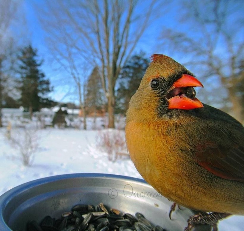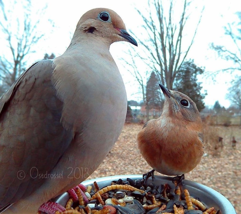 Если вам уже неоднократно приходила в голову идея установить птичью кормушку на окне или возле своего дома, чтобы наблюдать за птицами, то после увиденного в этом материале вы наверняка так и сделаете. Жительница американского штата Мичиган не просто поставила кормушку, а еще дополнила ее камерой, которая срабатывала на движение. Таким образом, девушке удавалось рассмотреть всех пернатых, прилетающих к ней в течение дня, да еще и ловить их в кадр в самые неожиданные и забавные моменты. Со временем американка поняла, что настолько чудесные фотографии должен увидеть весь мир, а потому завела специальный аккаунт в Инстаграм и регулярно выкладывает новые снимки из жизни птиц, заглянувших к ней подкрепиться. Взгляните, насколько интересно наблюдать за ними!