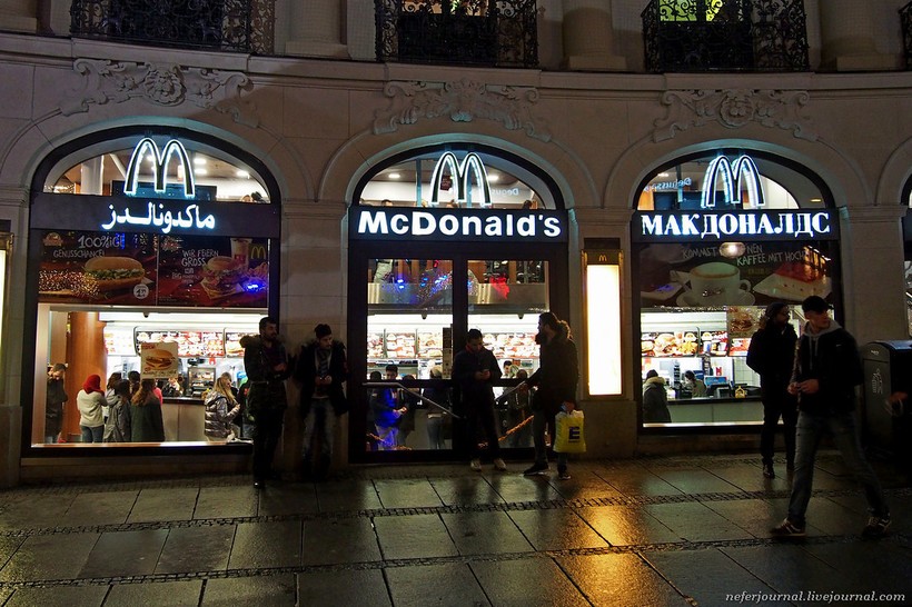Макдоналдс на Карлсплац. Вывеска на арабском и на русском языках. Как говорится, ВНЕЗАПНО.