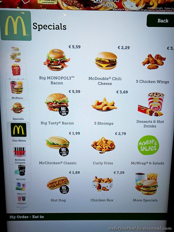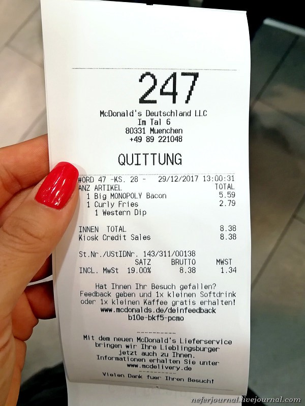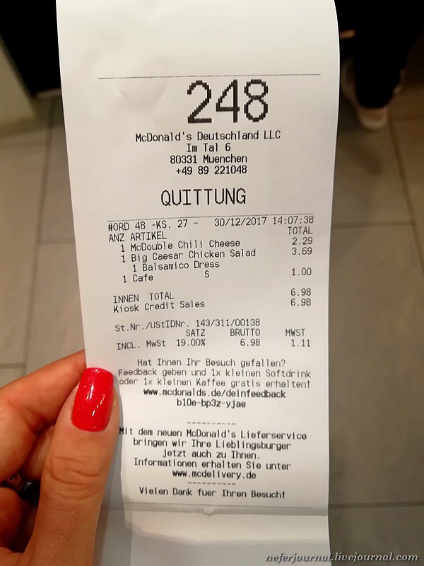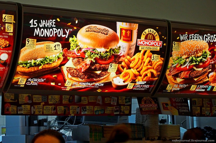 В каждой стране обязательно захожу в Макдоналдс. Посмотреть цены, изучить меню, попробовать что-то новенькое, чего нет у нас. В Мюнхене, например, продается кудрявая картошка и бургеры с татуировкой.