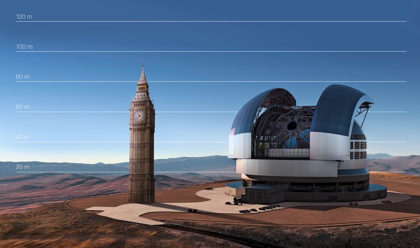 Проект астрономической обсерватории ELT в сравнении с Биг-Беном.