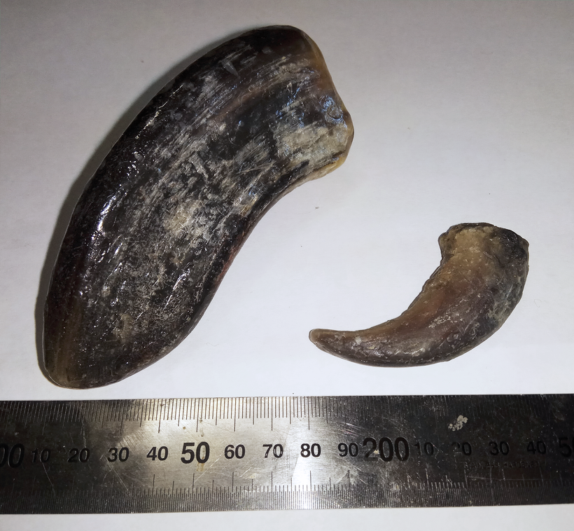 Коготь страуса и коготь медведя. Причем медвежий справа.