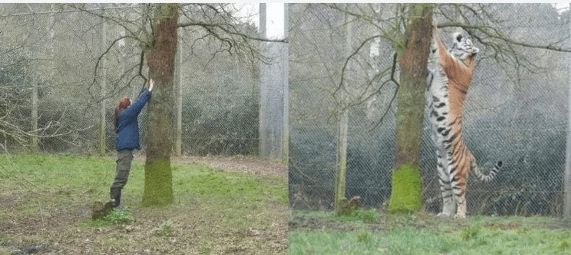 Таким будет рост амурского тигра, если он встанет на задние лапы.