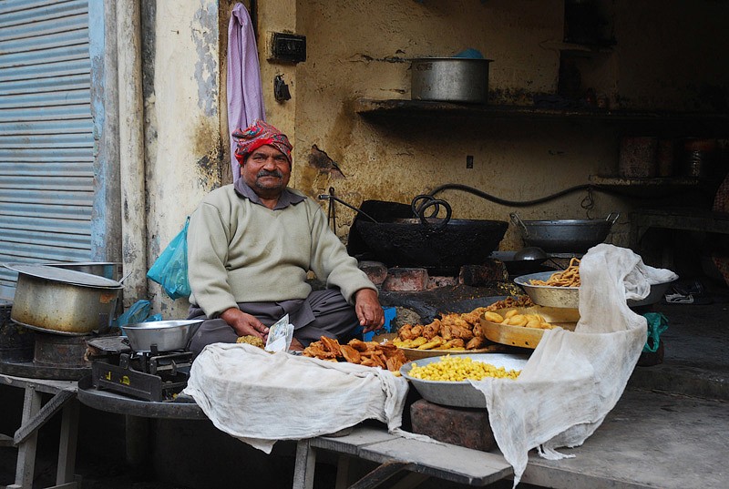 Продавец жареных вкусняшек в Амритсаре. Я его товар не пробовал и никому не советую — это, наверное, самая вредная пища в мире. Масло, в котором они все это готовят, не меняется месяцами.