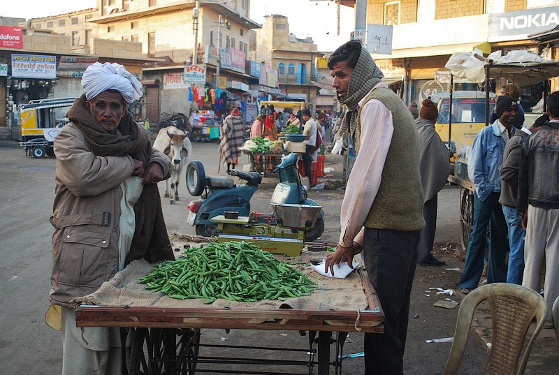 Джайсалмер. Покупатель неохотно расстается с наличностью, чтобы купить фасоль. Продуктовых магазинов и супермаркетов нет, все продается на улице и обычно по отдельности. Кто-то продает сигареты, кто-то бананы, кто-то сладости.