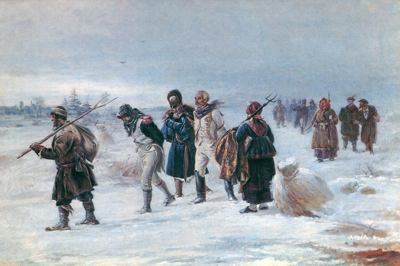 В октябре 1812 года Бонапарт выезжал из Москвы с многочисленными обозами, награбленного в Первопрестольной. Там были и золотые иконы, и кремлевские украшения, и крест с колокольни Ивана Великого, и различные драгоценности, и оружие, 20 пудов золота, 300 пудов серебра. Но вот до Франции все награбленные трофеи не дошли.