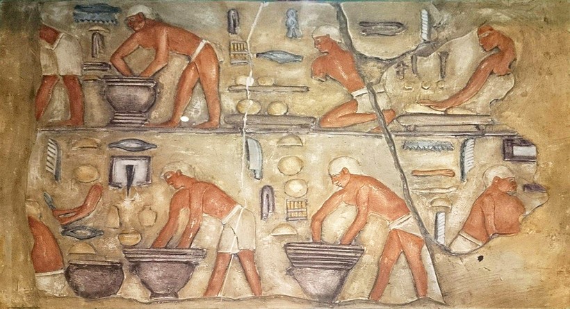 Наряду с пивом, хлеб был неотъемлемым продуктом питания в древнеегипетской диете. Но хлеб, который они ели, во многом отличается от того, который мы привыкли потреблять сегодня. Из-за сырой посуды и несовершенного производства туда попадали различные смеси и примеси, микроэлементы: кварц, полевой шпат, слюда и другие минералы. Из-за этого он всегда был грубее и тяжелее. Несмотря на это, хлеб составлял самый большую часть рациона питания в древнем Египте.