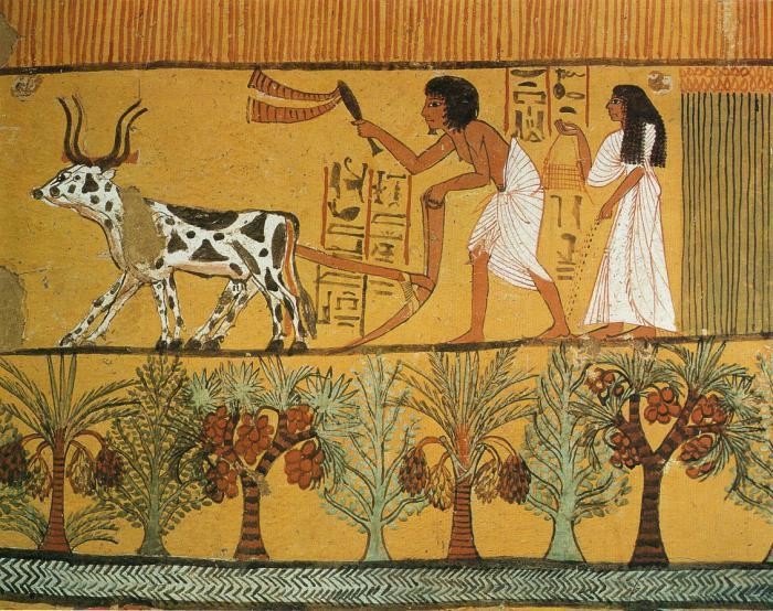 С появлением сельского хозяйства и земледелия в древнеегипетской цивилизации участилась и практика разведения скота. Среди крупного рогатого скота быки использовались исключительно для сельского хозяйства, но другой домашний скот, такой как коза, овца, корова, держали для молока, которое он давал. Разведение крупного рогатого скота было очень популярным, и размер стада позволял продемонстрировать престиж владельцев. Помимо употребления молока, другие молочные продукты, такие как творог, сыворотка и молочные сливки, также использовались людьми в качестве популярных деликатесов.