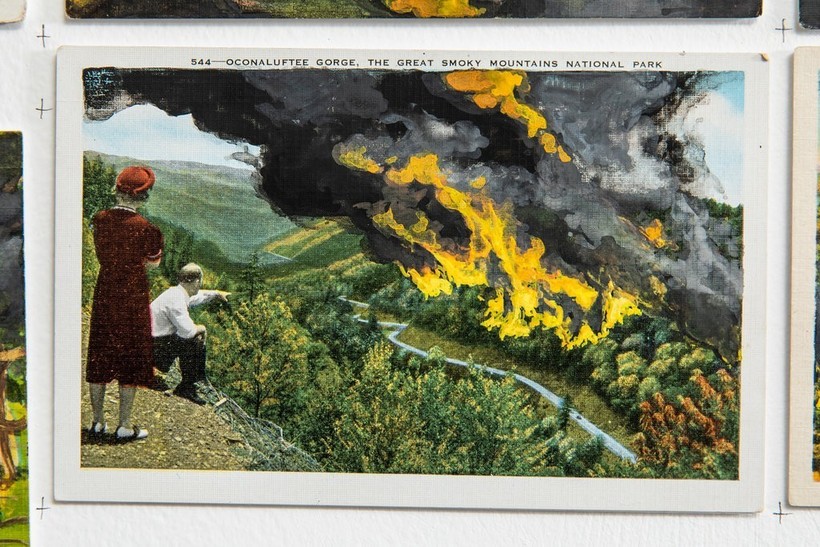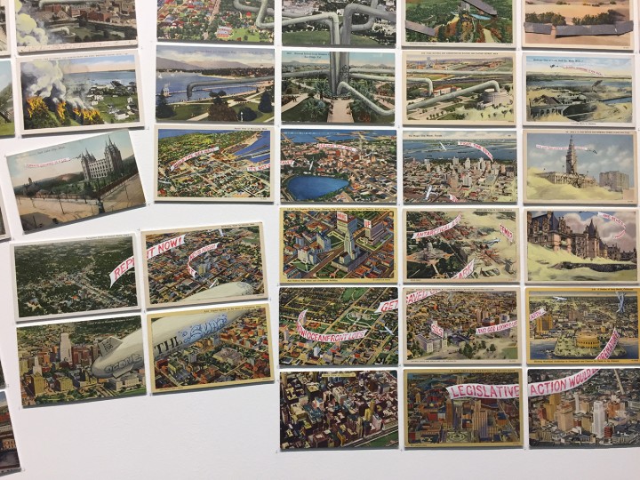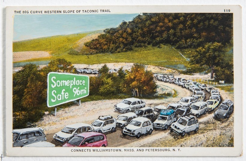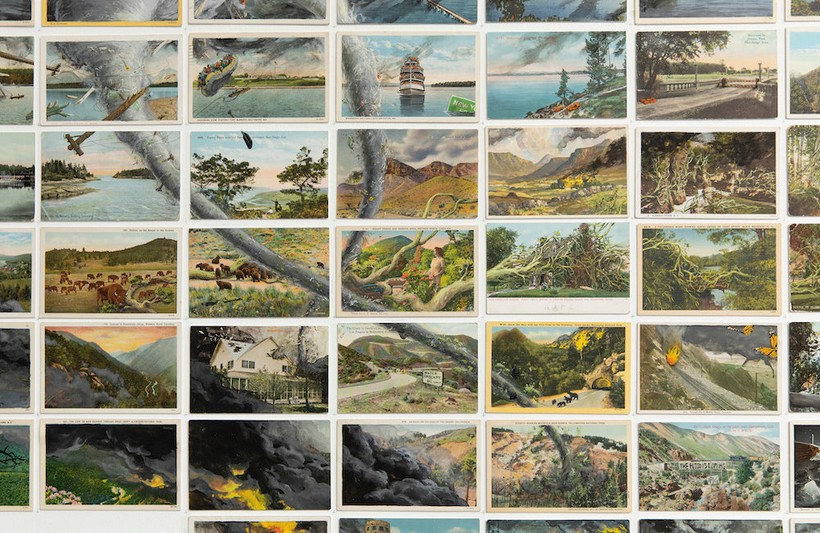 Опдайк нарисовал гуашью 528 картин. Все они в одном выдержанном стиле ретро и больше напоминают открытки. Каждая из его работ является частью большего: все они собраны в единый коллаж, на котором легко узнать главные природные красоты США. Некий горный пейзаж, наполненный реками и озерами. Но стоит приблизить каждую из этих работ, как становится понятно, что до идиллии здесь слишком далеко, а на открытках — постепенно разрушающийся мир. Ностальгическая Америка разрушается экологическими катастрофами, вмешательством человека и болезнями: над нацпарками протянулись трубопроводы, где-то бушуют торнадо, а где-то — дождь из лягушек. Более-менее спокойно в центре, однако весь этот хаос, раздирающий мир, приближается и к нему.