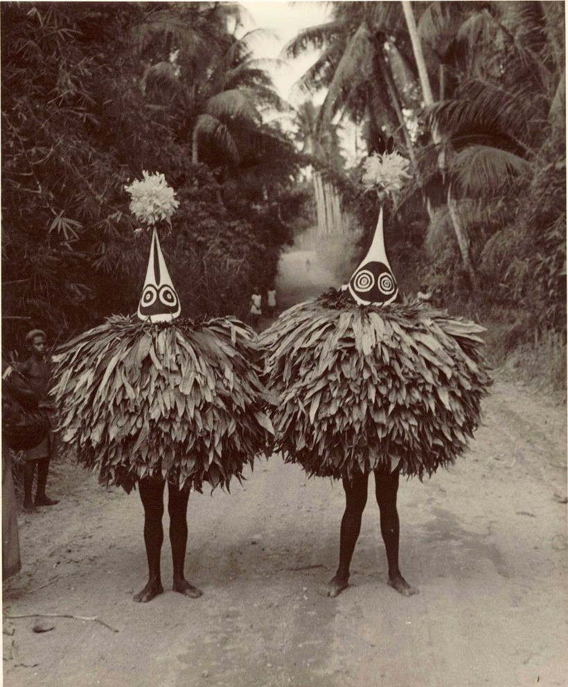 Одна из наиболее заметных особенностей Дук-Дук — это церемониальные костюмы, которые носят его члены. Они состоят из конусной головки и листового тела. Но есть два вида таких костюмов. Они отличаются в чертах лица на конусе. Один из них безликий и называется Дук-Дук, а другой — с большими глазами и тонким серповидным ртом — называется тубуан. Считается, что первый привлекает мужской дух, а второй — женский. Оба костюма, однако, носили мужчины, поскольку женщинам было запрещено вступать в Дук-Дук.