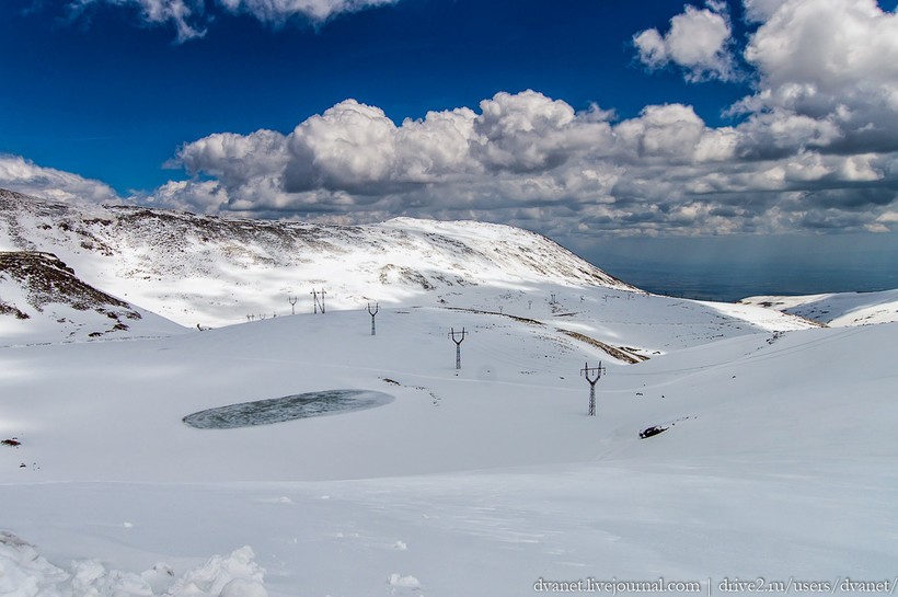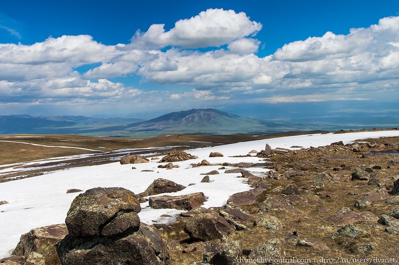 Хаш — зимнее блюдо, которое можно есть только в те месяцы, в названии которых есть буква «Р». Не найдя букву «Р» в месяце май, мы приняли решение найти хотя бы зиму посреди начинающегося лета. А где можно летом найти зиму? В горах, конечно. Летом самый правильный хаш можно попробовать только на склонах самой высокой вершины Армении — горы Арагац.