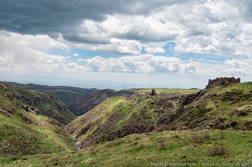 Это крепость Амберд, настоящее феодальное гнездо — суровое, без всяких украшательств, в защищенном природой месте, с системой водоснабжения на случай осады и несколькими подземными ходами, ведущими на дно ущелья. Попробуй выковырять феодала.