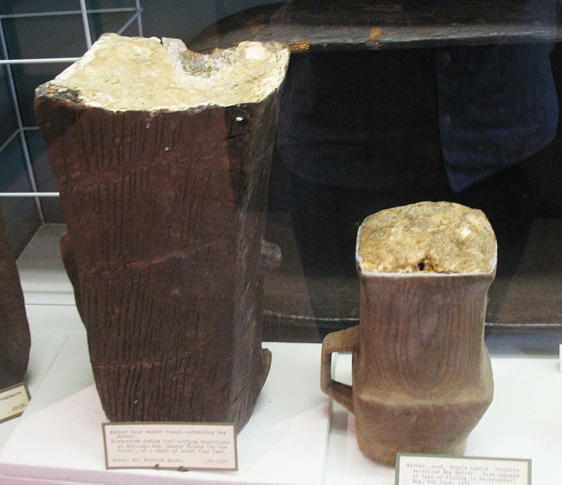На территории Шотландии и Ирландии на данный момент обнаружено более 250 древних тайников со сливочным маслом, которое неплохо сохранилось, учитывая его почтенный возраст в несколько тысяч лет. Масло было обнаружено в залежах торфа в болотистой местности, которую когда-то населяли древние жители этого региона. Массовые тайники в болоте долгое время оставалась загадкой, для разгадки которой потребовалось провести ряд экспериментов.