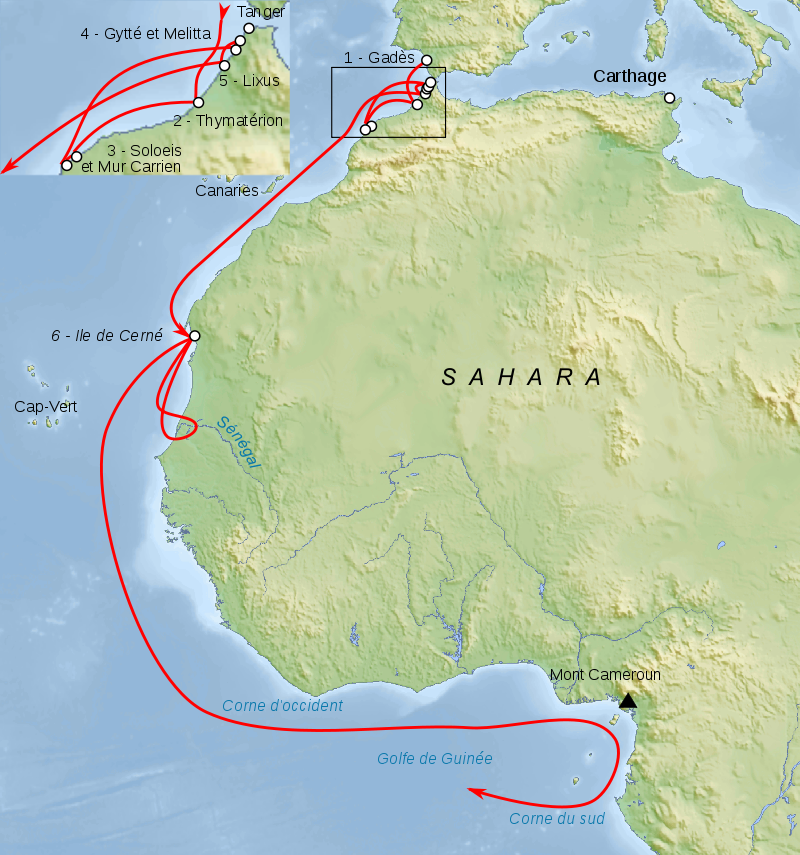 Факт, что карфагеняне плыли по западному побережью Африки, подтверждается Геродотом. А также тем, что большой флот Ганнона не послали бы основывать колонии в места им неизвестные. Так что можно утверждать, что это путешествие было явно не первым.