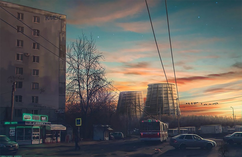 Диджитал-иллюстратор из Самары Андрей Тоболяков отыскивает снимки «уставшей» российской глубинки, удручающих серых городков и другие невеселые локации. В фоторедакторе эти унылые виды преображаются в места из футуристических миров. Получается нечто удивительное!