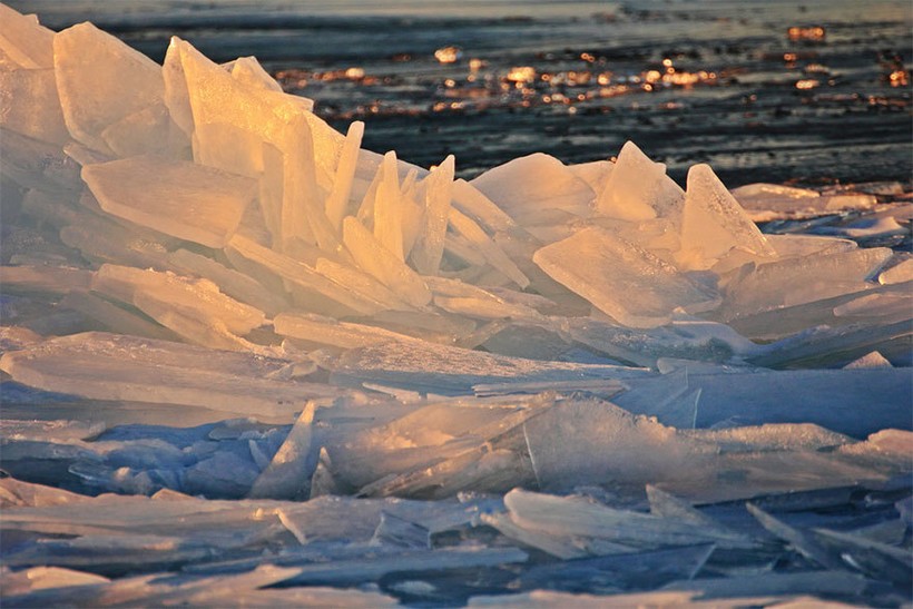 Движущаяся подо льдом вода выталкивает замерзшие пласты на поверхность и разбивает их на завораживающие узоры, которыми можно полюбоваться с пирса Саут-Хейвен. Запечатлеть это прекрасное явление на камеру можно только издалека, выходить на неустойчивую поверхность озера — это крайне опасная затея.
