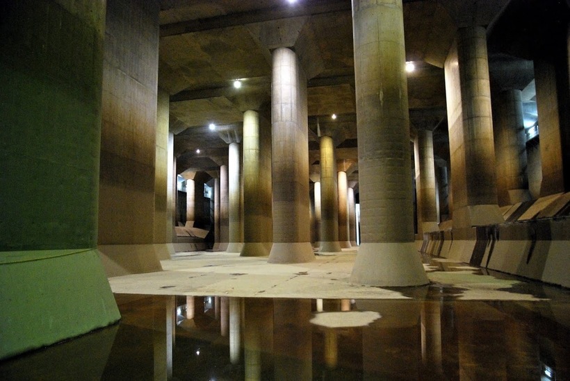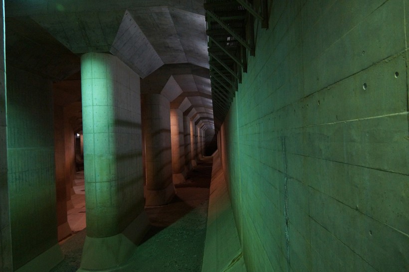 Подземное водохранилище состоит из нескольких резервуаров, которые связаны друг с другом тоннелями диаметром более 10 метров. Пройдя по лабиринту подземных емкостей, излишняя вода в итоге откачивается в реку Эдо, с которой связана система защиты. Вся эта грандиозная система вмещает около 160 тыс. куб. м паводковых вод.