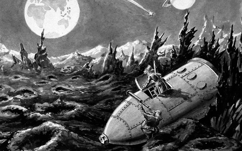 Здесь же Верн фантазирует о полете человека на Луну на корабле, по форме корпуса похожем пулю. Лишь спустя примерно век американцы воплотят этот вымысел в реальность, сами того не подозревая.