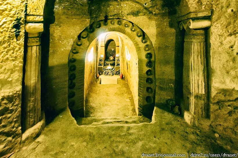 23 года работы рук одного человека по 18 часов в сутки. 21 метр глубина. 150 метров переплетенных коридоров. Лопата и ведро, молоток и зубило.