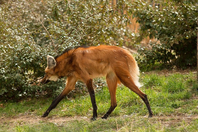 Ни у кого из волков, лисиц и других представителей псовых нет таких необычайно длинных конечностей. Любопытно, что щенки гривистого волка по длине лап не отличаются от других волков, но по мере взросления их ноги становятся более длинными. Кажется, что, обладая такими изящными конечностями, этот зверь может очень быстро бегать. Но на самом деле это не так, гривистый волк не может похвастаться хорошими скоростными показателями бега. Остается предположить, что такие необычные ноги нужны ему только ради хорошего обзора местности.
