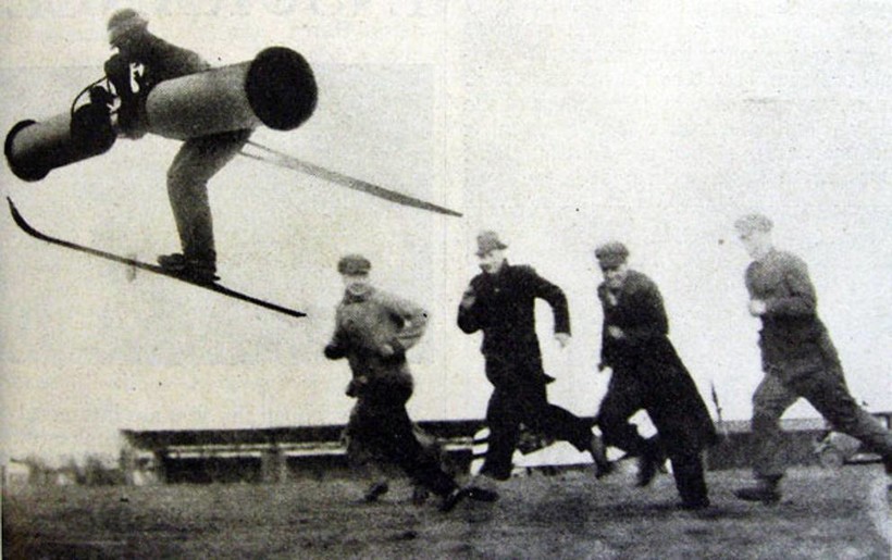 В 1934 году в одном из немецких СМИ вышла история о гениальном летчике, который изобрел индивидуальный летательный аппарат. К статье была прикреплена даже фотография, на которой умелец был облачен в костюм, лыжи, а во рту держал трубку, в которую он дул и которая, видимо, и помогала ему лететь. Шутку подхватили многие иностранные журналы, и об успешном летчике-испытателе напечатали материалы все мировые СМИ, в том числе и New York Times. Конечно, это был всего лишь первоапрельский розыгрыш, не более.