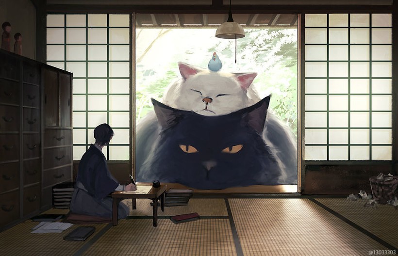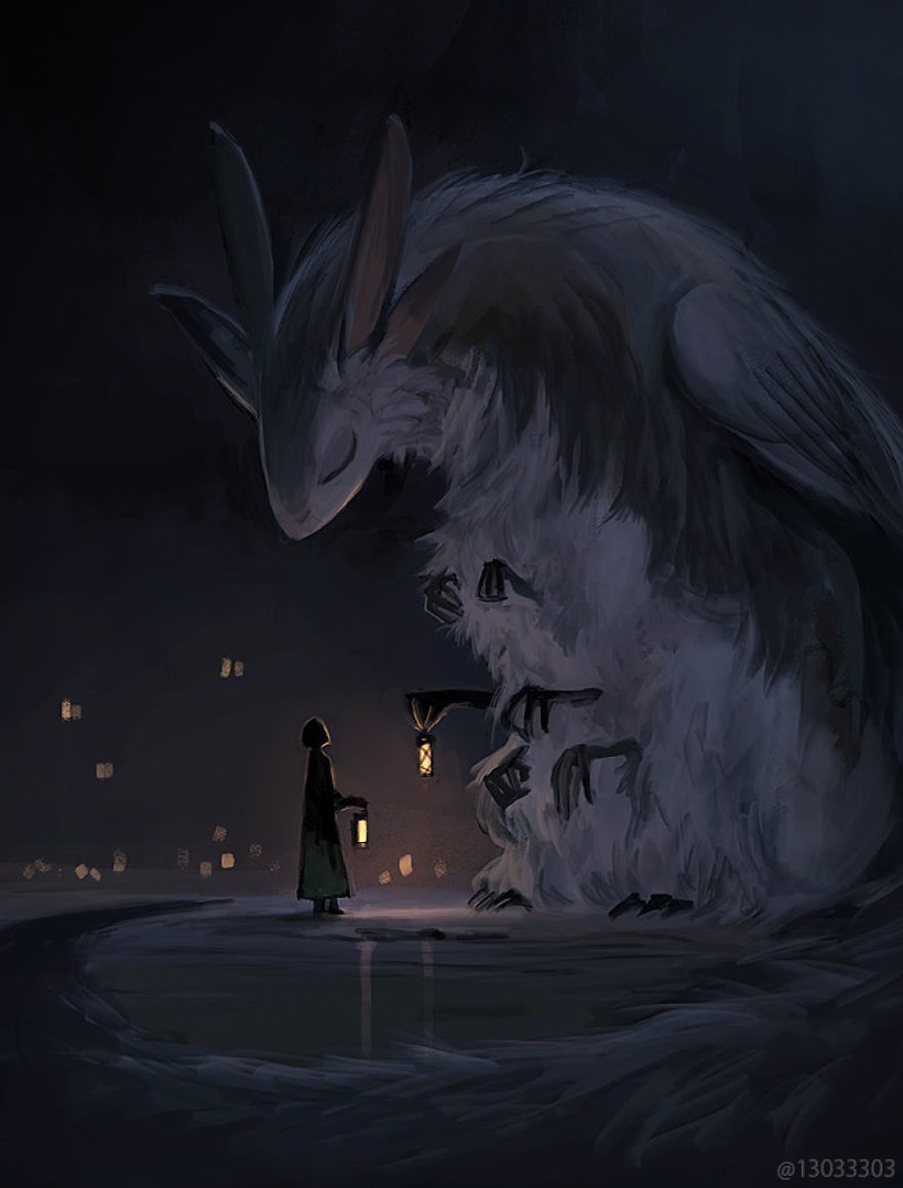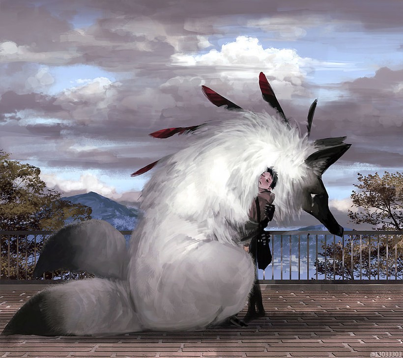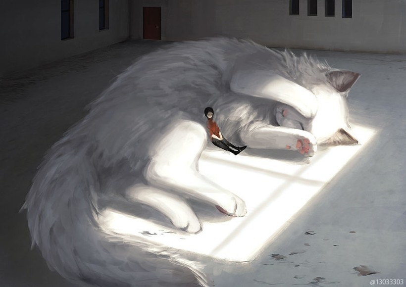 Загадочный иллюстратор из Японии Ariduka55 придумывает потрясающие фантазийные миры. Здесь огромные питомцы существуют бок о бок с людьми. Все очень похоже на нормальную, обыкновенную жизнь, если не считать того, что зверушки по размерам приближаются к многоэтажным постройкам.
