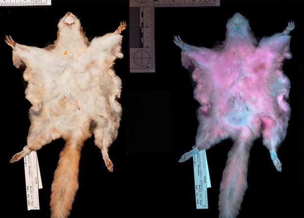 Не так давно ученым удалось выяснить, что белки-летяги обладают не только удивительной способностью к планирующему полету, но и могут светиться розовым цветом в условиях ультрафиолетового освещения.