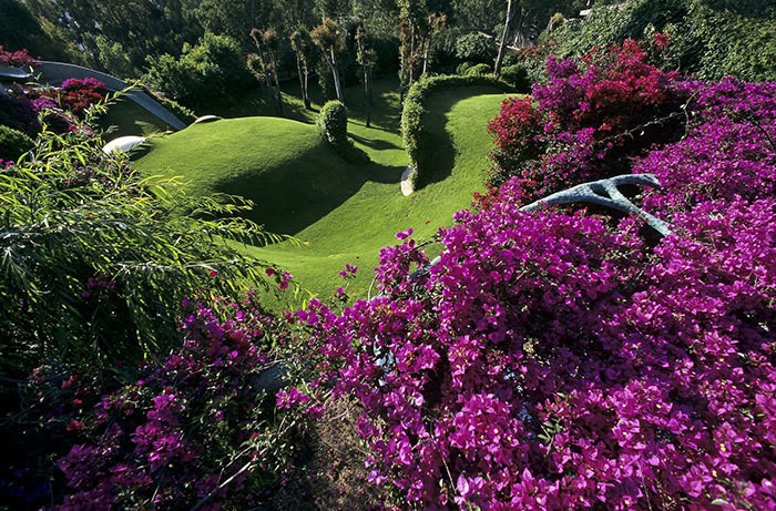 Зелень — лейтмотив этого проекта. Кусты, деревья и трава играют первостепенную роль в обустройстве жилья. Они защищают от перепадов температуры внутри, сохраняют приятную прохладу и чистый воздух в зной во внутренних зонах постройки.