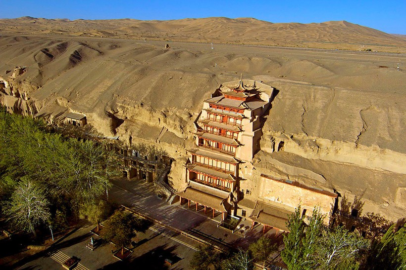 Первые пещерные храмы возникли здесь в 350-х годах. С тех пор оазис Дуньхуан входил в состав различных китайских и монгольских государственных образований на северо-западе Китая. Новые правители, будучи приверженцами буддизма, старались внести свой вклад в развитие храмового комплекса, и в склонах горы Миншашань регулярно появлялись новые пещеры. Таким образом, спустя столетия после начала строительства в районе оазиса Дуньхуан возникло более 1000 пещер. К сожалению, землетрясения и варварское разрушение кочевыми племенами привели к тому, что здесь сохранилось около 700 пещер, но лишь 492 из них содержат религиозные скульптуры и фрески. Самой большой и знаменитой среди них является пещера Могао.