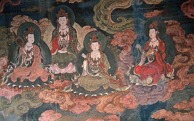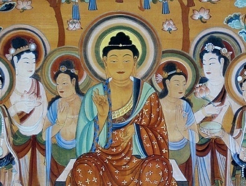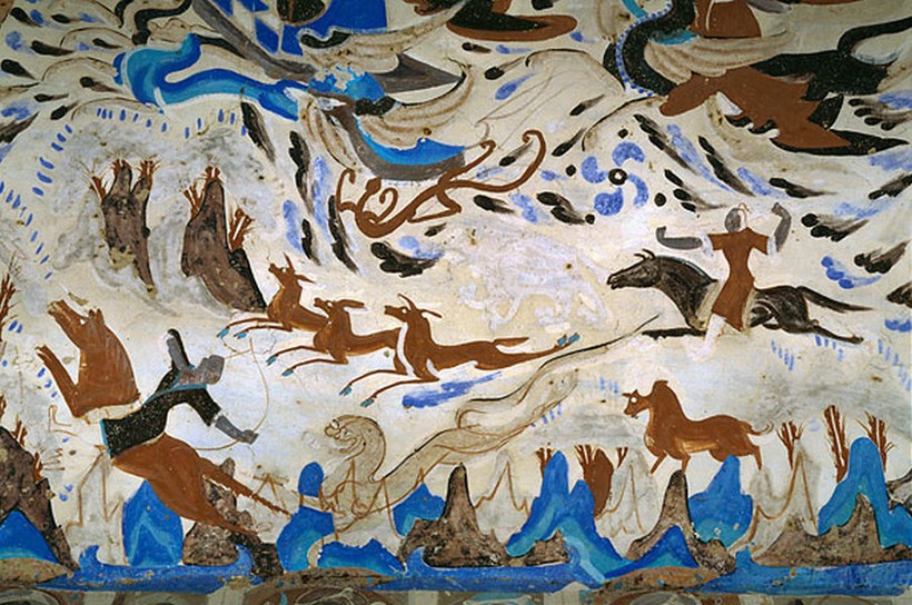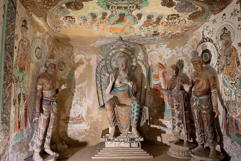 Этот храмовый комплекс славится своими великолепными настенными фресками. Большинство пещер украшено сюжетами из буддийских текстов, которые отражают основы буддийского учения и повествуют о жизни Будды, а также рассказывают о праведных монахах. Кроме религиозных мотивов, в пещере представлены и вполне земные сцены. В некоторых пещерах можно увидеть изображения жизни императорской семьи, работы крестьян на полях или охоты.