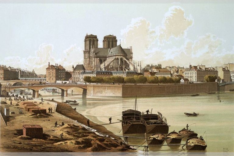 Строили Нотр-Дам почти двести лет. Первый камень заложили в 1163 году, а строительство закончилось только спустя два века — в 1345 году. Когда-то на месте собора в разные периоды истории находились разные храмы. Сначала здесь располагался галло-римский храм Юпитера, затем на замену ему пришла древняя раннехристианская церковь, датируемая примерно IV веком, после нее — базилика первых королей Франции Меровингов, затем — собор времен Каролингской империи. Последний, кстати, тоже горел в огне и был восстановлен после пожара. Место для Нотр-Дама было выбрано вовсе не случайно: именно отсюда начал застраиваться Париж.
