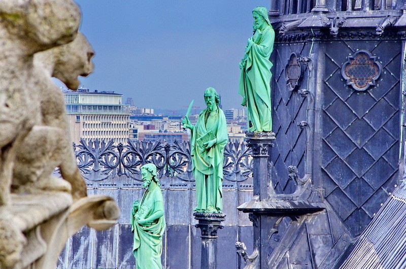 Реставрация проходила на протяжении двадцати лет, с 1844 года по 1864 год, и Нотр-Дам буквально воскресили. Тогда же появился и новый шпиль на месте старого разобранного. Выполненный из дуба и покрытый свинцом, он вытянулся на 96 метров в небо. Его окружили фигуры апостолов, которые, по счастливой случайности, в недавнем пожаре не пострадали: их впервые сняли со шпиля для реставрационных работ.