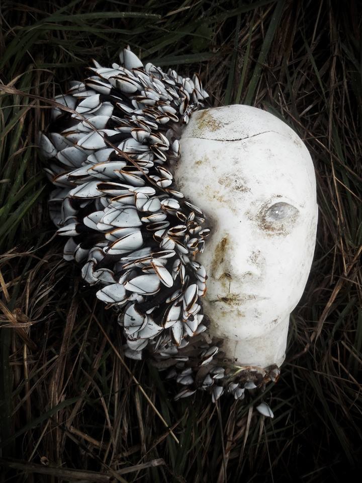 Заросший моллюсками стеклянный сосуд как произведение искусства.