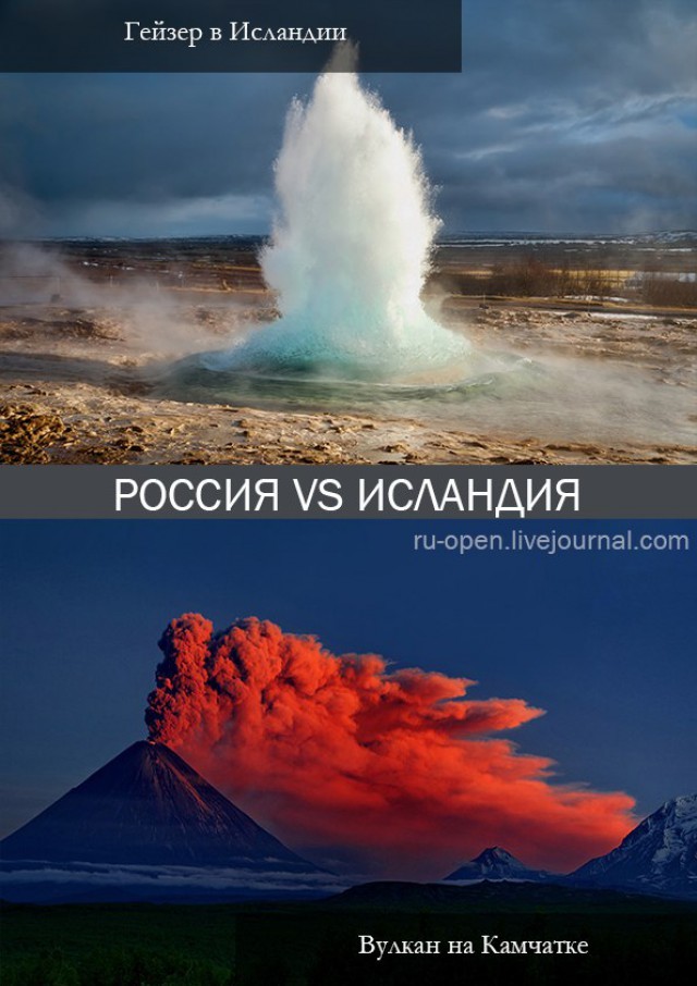 Вулканы и гейзеры Исландии VS. вулканы и гейзеры Камчатки