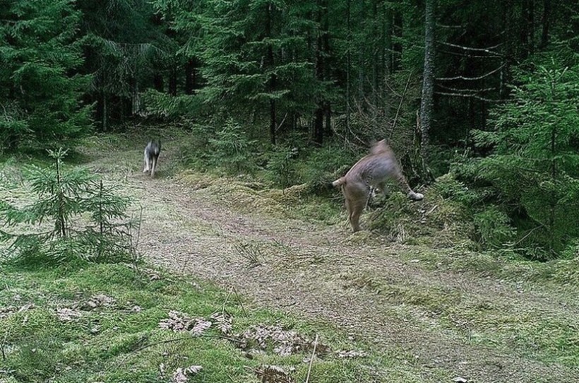 Как правило, волки и рыси имеют несколько разный ареал обитания, а потому противостояния между ними довольно редки, но все же случаются. Не так давно подобный случай зафиксировала фотоловушка на территории Беларуси. Так, в Налибокской пуще рысь случайно набрела на территорию волка и неожиданно столкнулась с хозяином лицом к лицу.